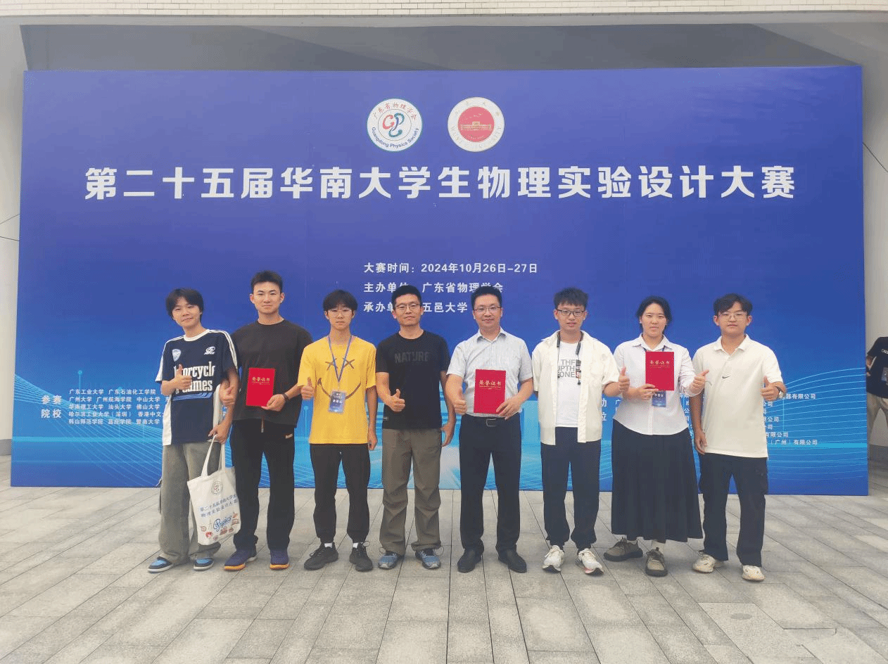 本次华南地区大学生物理实验设计大赛吸引了众多来自华南地区各大高校的优秀学生团队参与。竞赛旨在通过一系列富有挑战性和创新性的物理实验项目,考察参赛队伍的实验设计、操作技能、数据处理以及团队协作等多方面的能力。我校代表队在指导老师的精心指导下,团队成员经过数月的认真准备,在众多参赛队伍中脱颖而出,最终取得历史性的突破,获得一等奖1项。