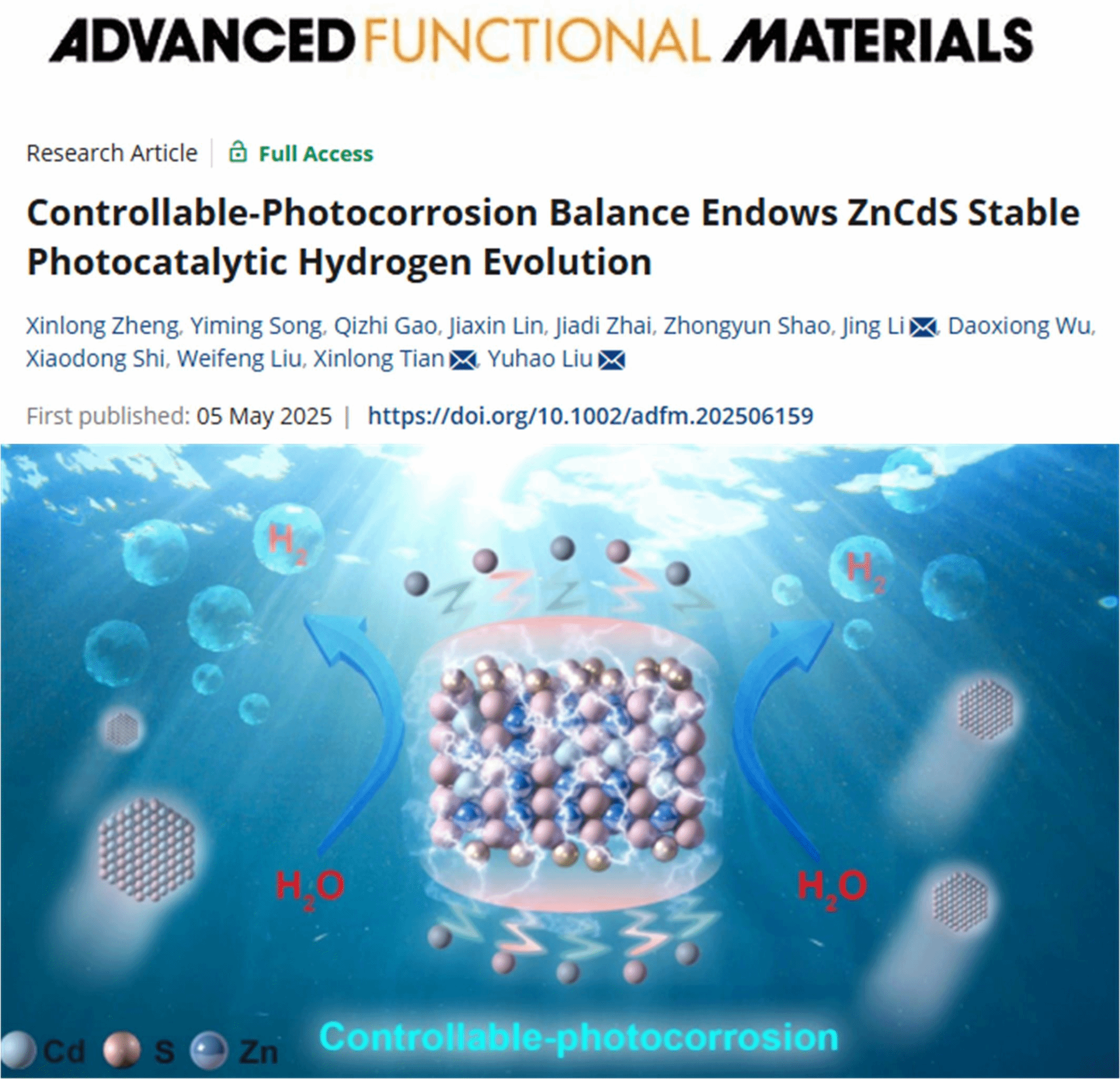 近期,中国·yL23411永利刘雨昊副教授在《Advanced Functional Materials》发表题为《Controllable-photocorrosion balance endows ZnCdS stable photocatalytic hydrogen evolution》的研究论文。yl23411集团2022级博士研究生郑馨龙、2024级博士研究生宋一铭、高奇志为论文共同第一作者;海洋科学与工程学院李静副教授、田新龙教授、中国·yL23411永利刘雨昊副教授为论文共同通讯作者。