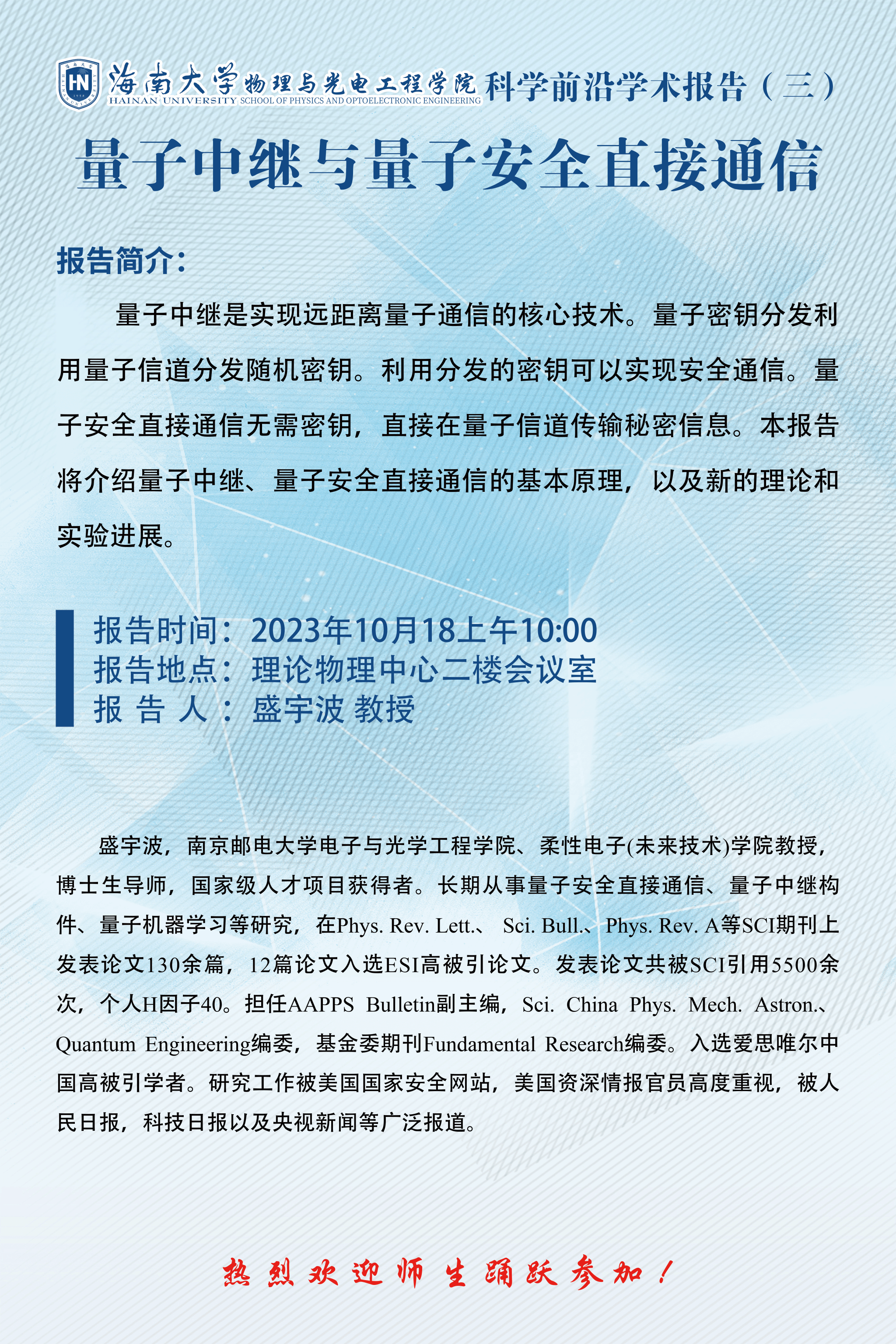 科学前沿学术报告(三):量子中继与量子安全直接通信