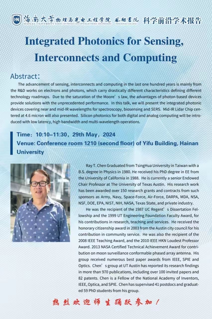 科学前沿学术报告(二十八):Integrated Photonics for Sensing, Interconnects and Computing