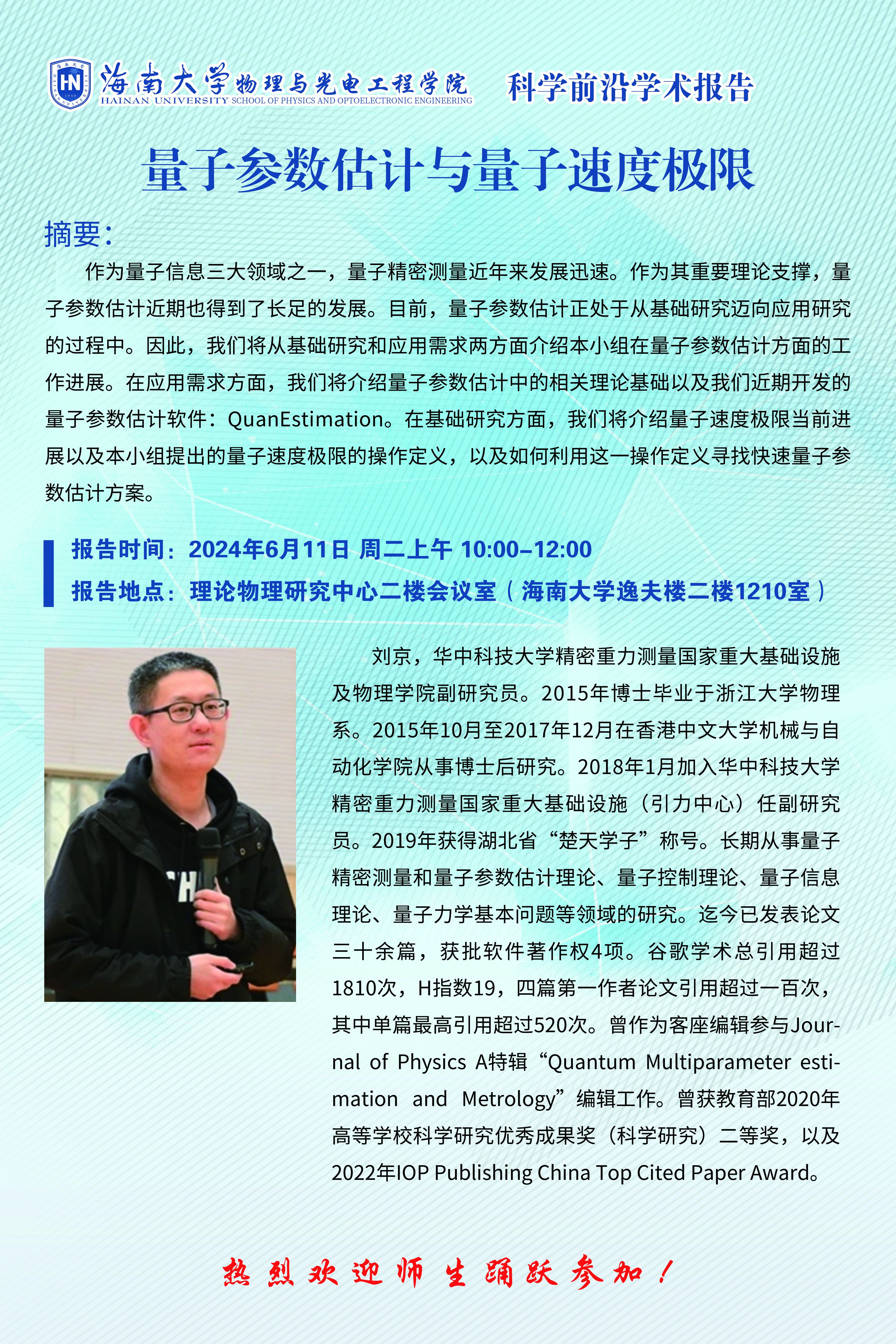 科学前沿学术报告(二十九):量子参数估计与量子速度极限