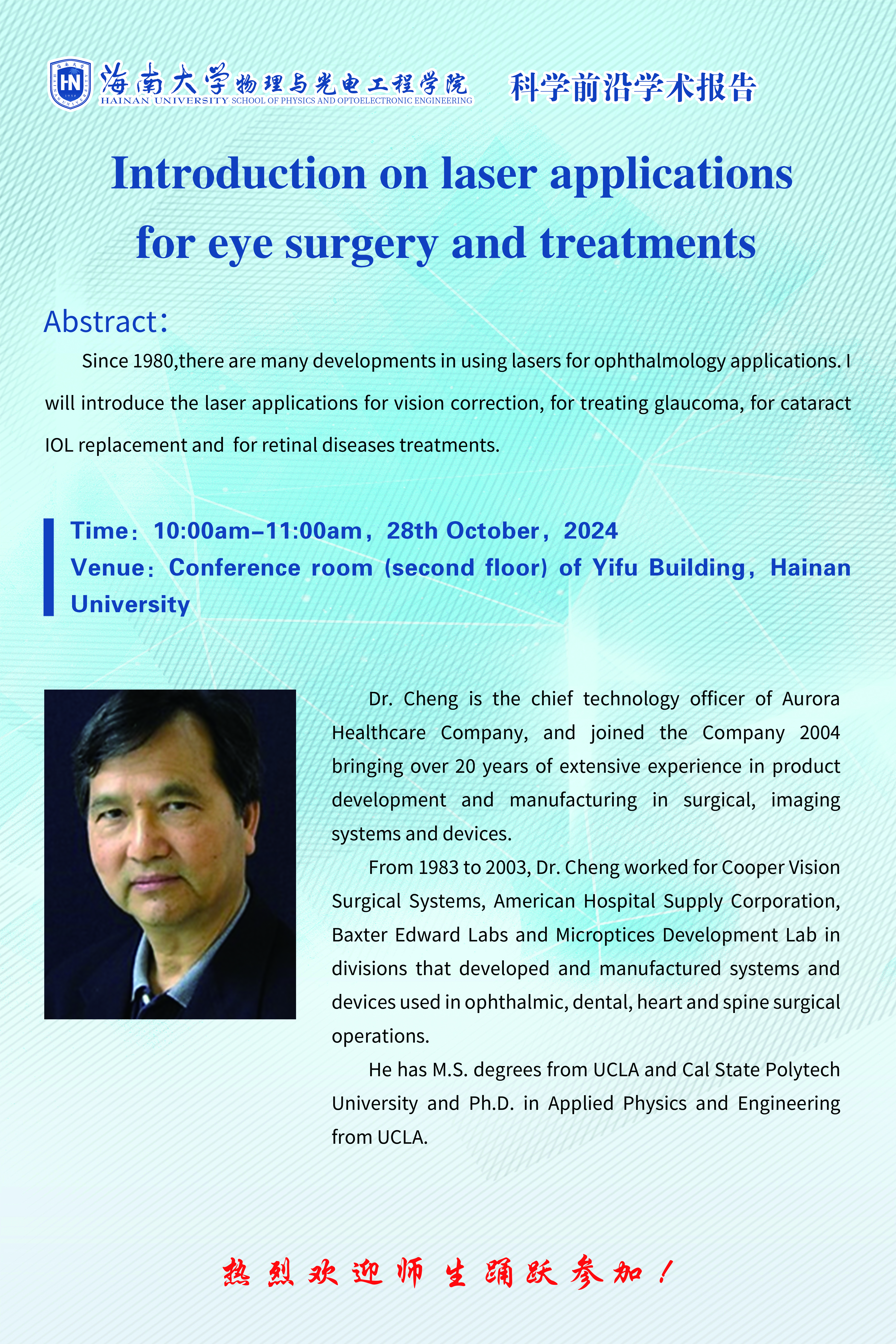 科学前沿学术报告(三十三):Introduction on laser applications for eye surgery and treatments