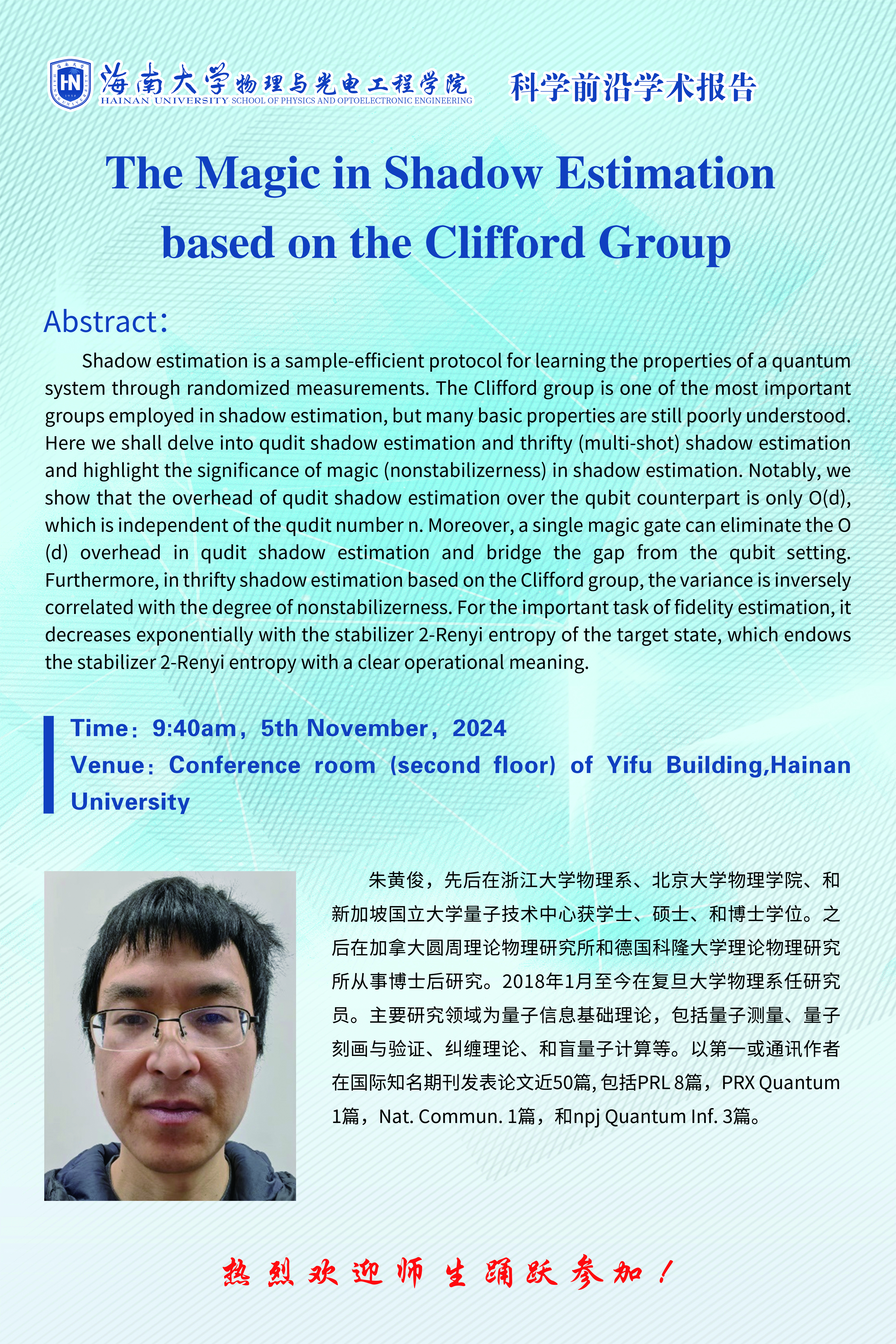科学前沿学术报告(三十四):The Magic in Shadow Estimation based on the Clifford Group