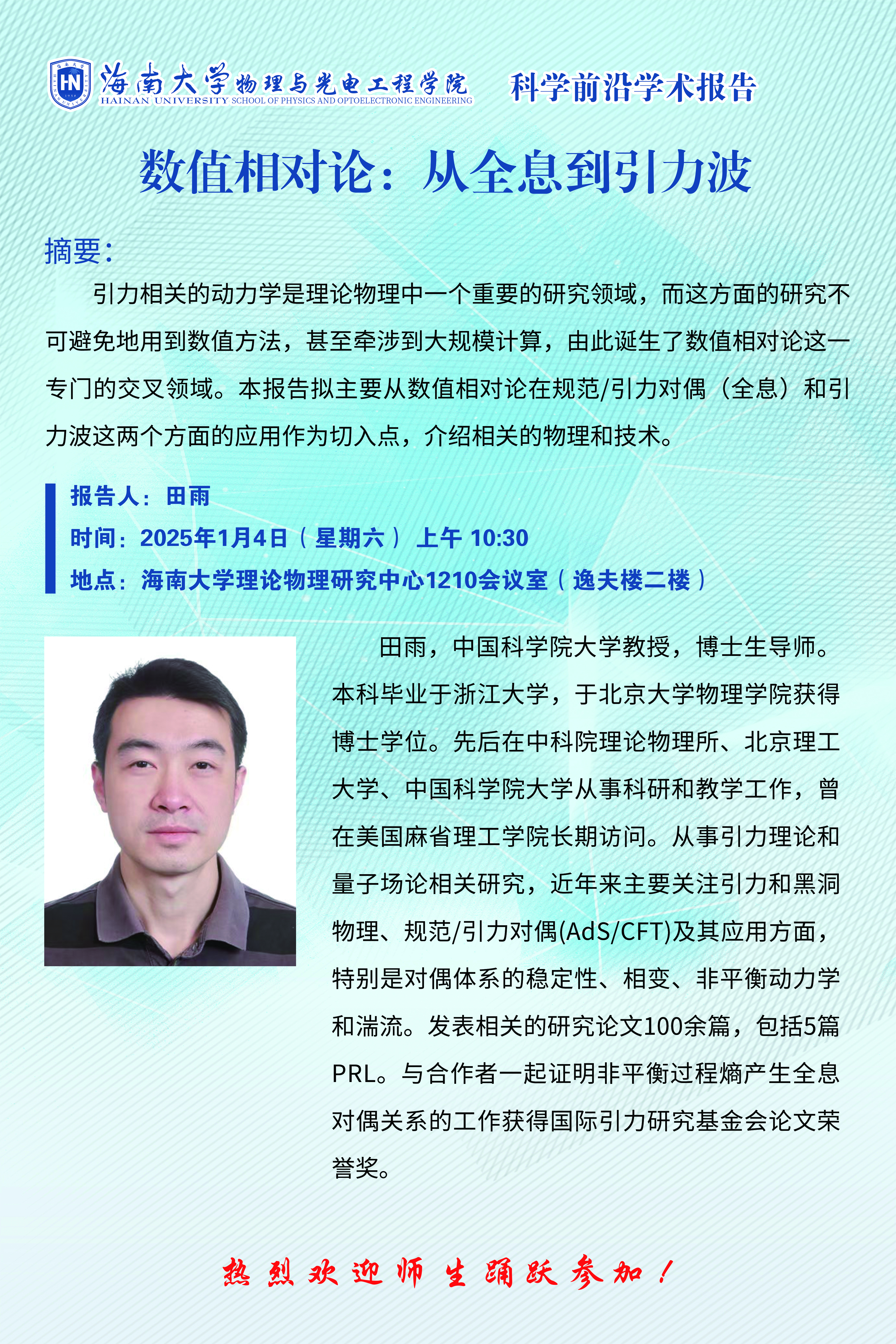科学前沿学术报告(四十五):数值相对论:从全息到引力波