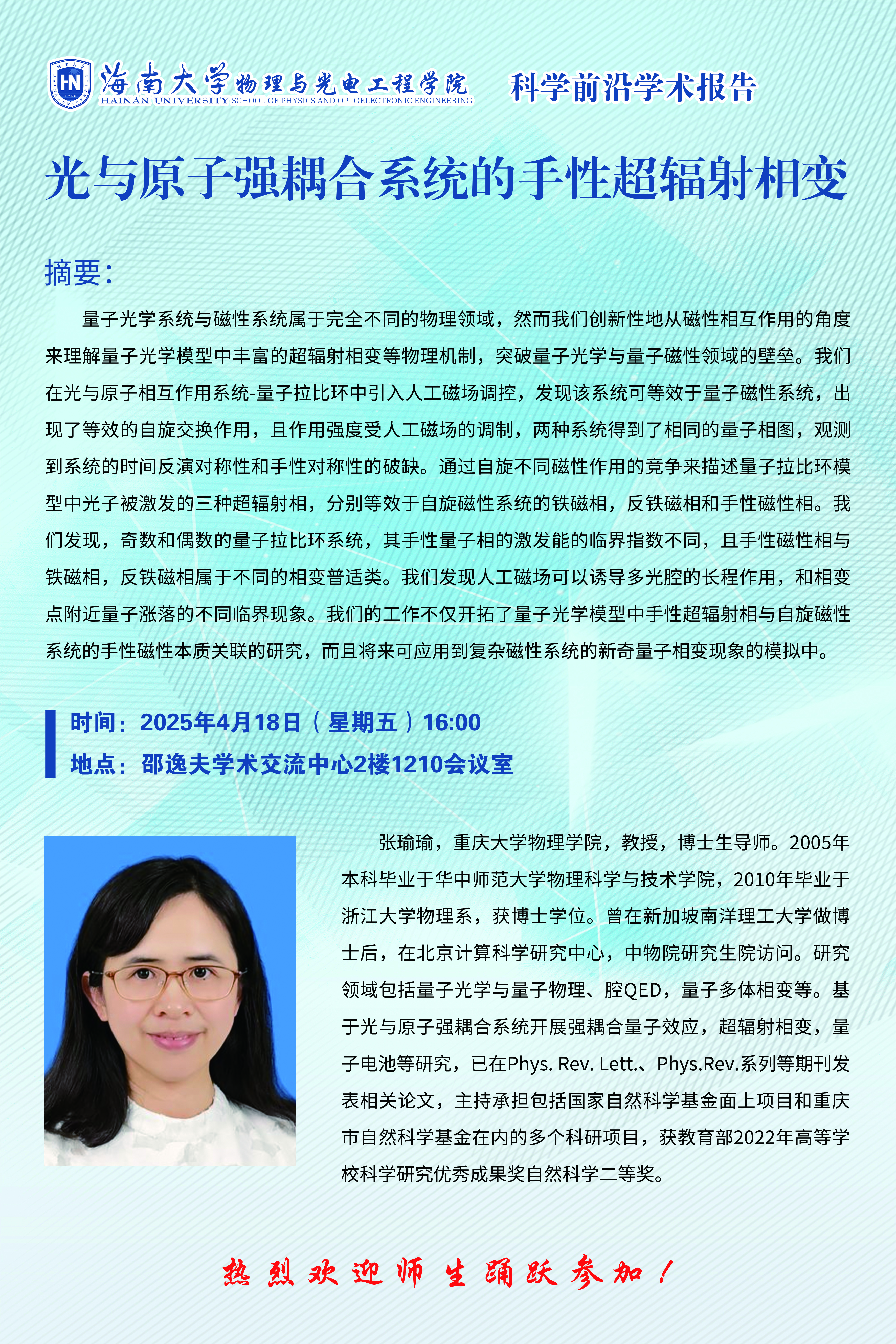 科学前沿学术报告(四十九):光与原子强耦合系统的手性超辐射相变