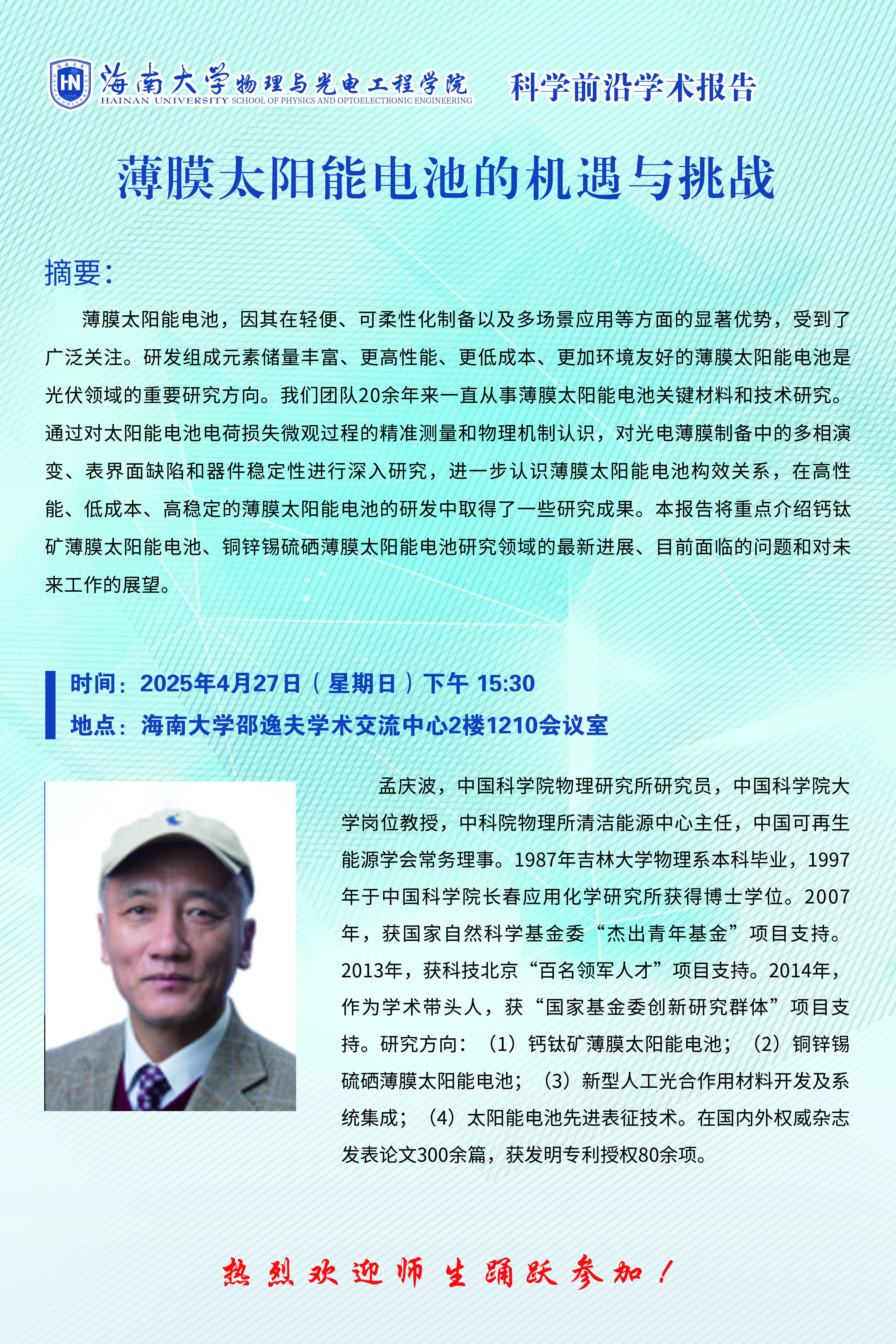 科学前沿学术报告(五十三):薄膜太阳能电池的机遇与挑战