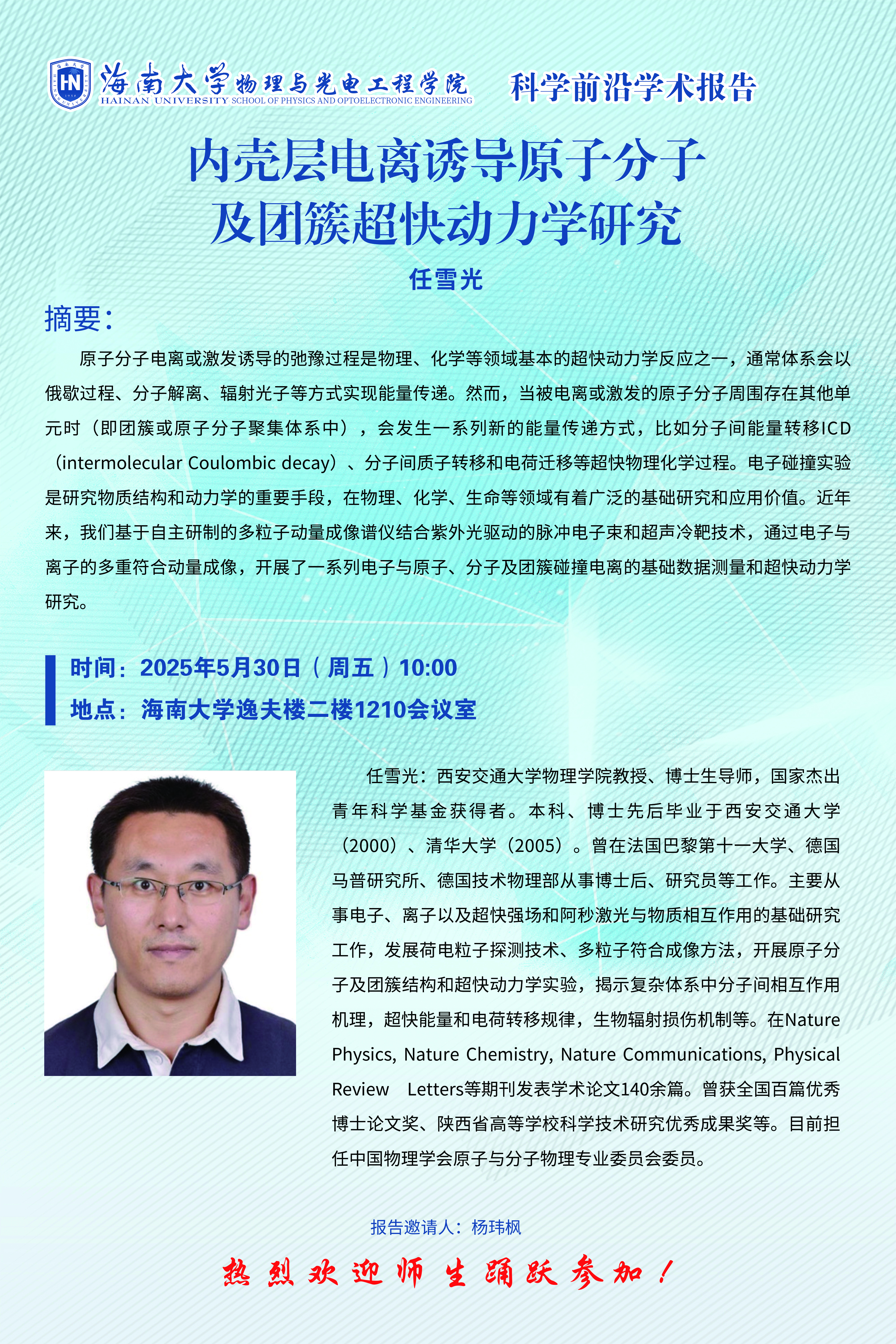 科学前沿学术报告(五十五):内壳层电离诱导原子分子及团簇超快动力学研究