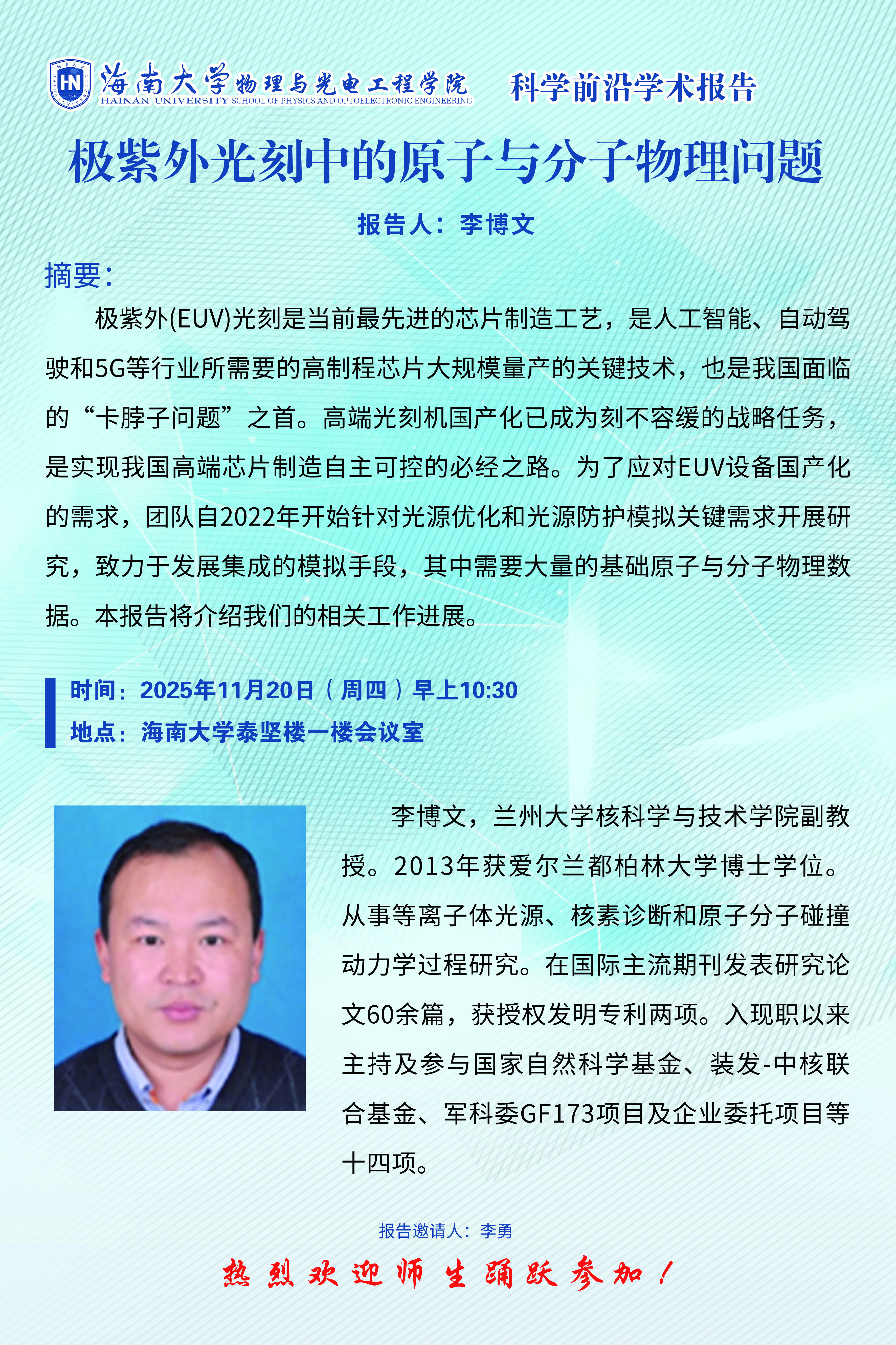 科学前沿学术报告(六十九):极紫外光刻中的原子与分子物理问题